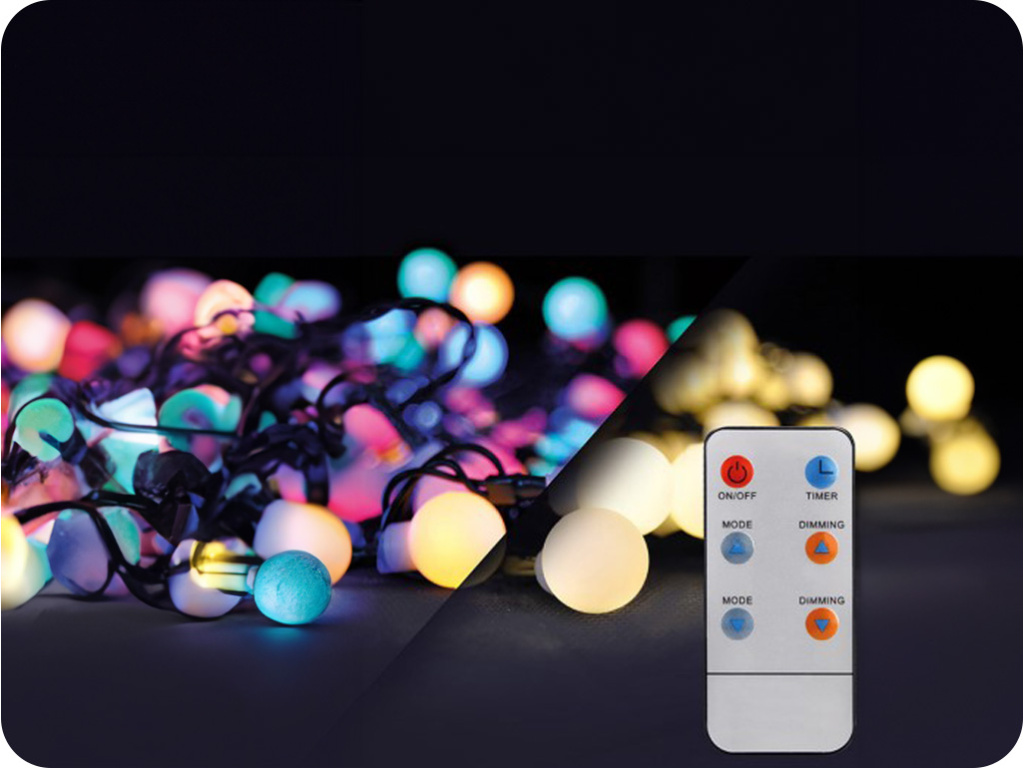 LED 2v1 vonkajšia vianočná reťaz, gule, diaľkový ovládač, 200LED, RGB+W, 8 funkcií, 1+1 zadarmo! [1V09-RGB]