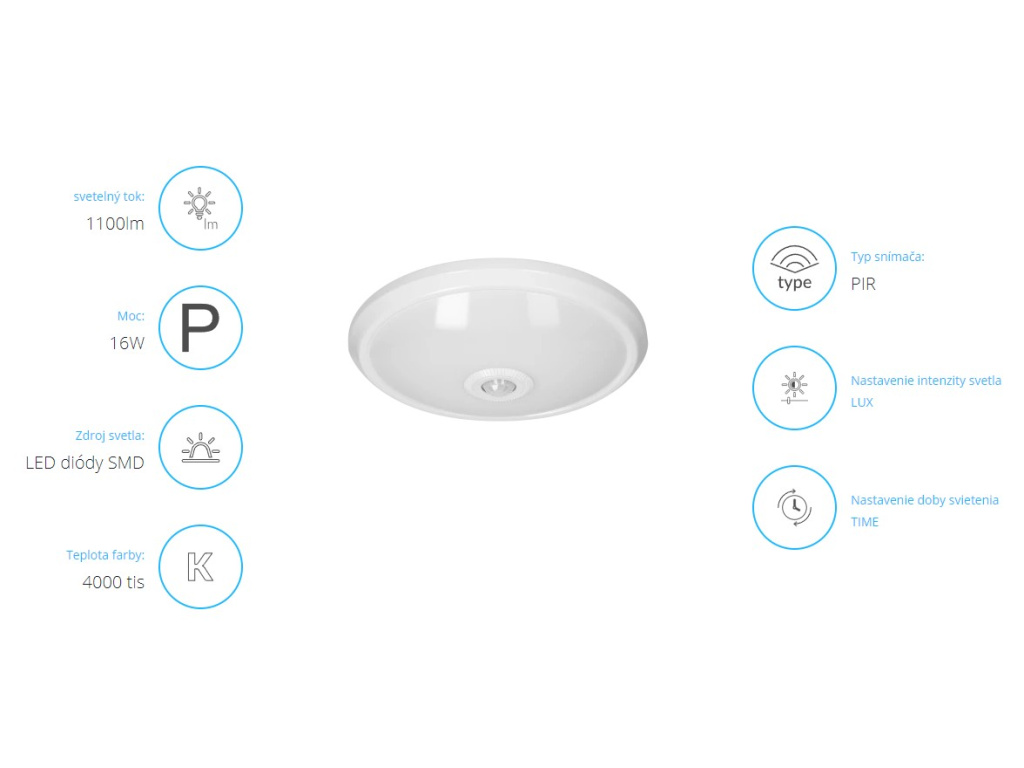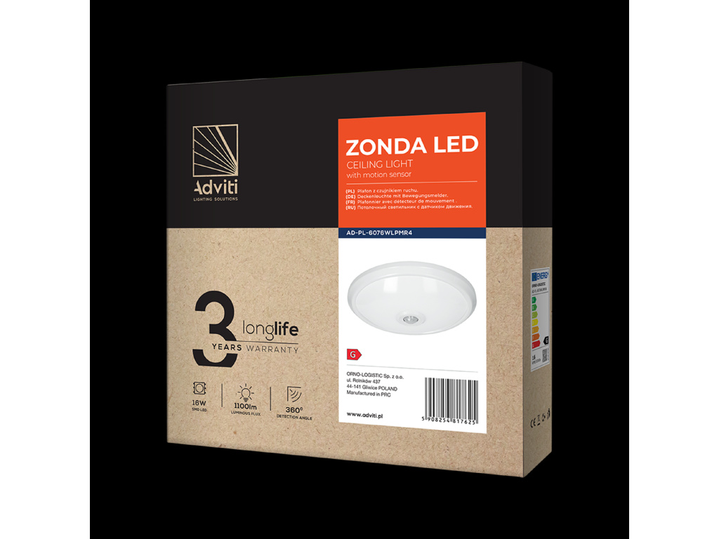 ✾ LED stropné svietidlo ZONDA so senzorom 16W, 1100lm, okrúhle, 4000K [AD-PL-6076WLPMR4]