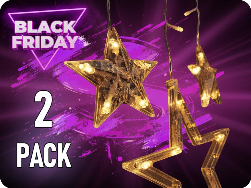 ✾ LED vianočný záves, hviezdy, šírka 1,8m, 77LED, IP20, 3xAA, USB/2-PACK! [1V227]