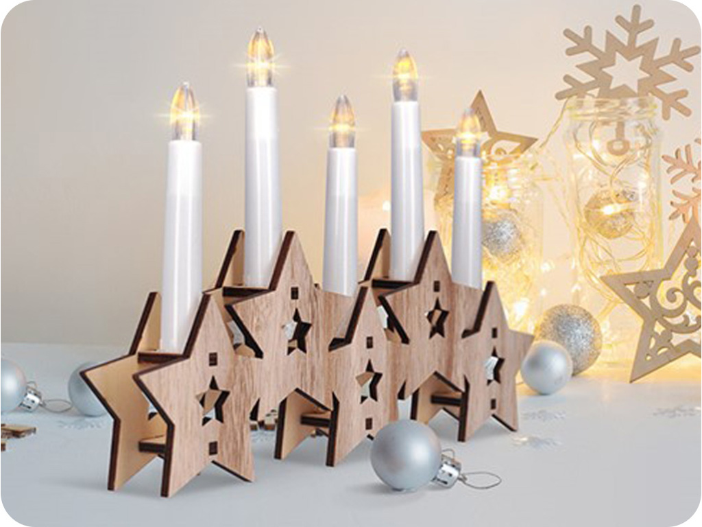 ⚡ LED drevený svietnik, 5xLED, prírodné drevo, 2xAA/2-PACK! [1V222]