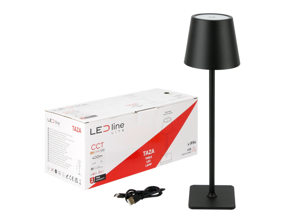 ✾ Stolná lampa TAZA 3,5W, 400lm, CCT, nabíjateľná, 2x2000mAh, čierna, 1+3 zadarmo! [203853]