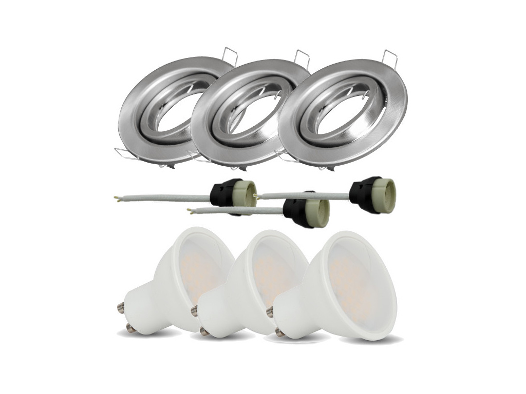 Balenie 3 x rám na GU10,satin nikel, 3 x LED žiarovka, 5W