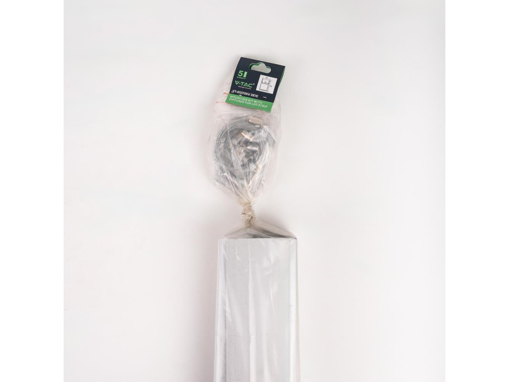 - Sada obsahuje 2-metrový profil, 4 koncové krytky so sadou skrutiek, 2 sady káblov na zavesenie svietidla a mliečne tienidlo