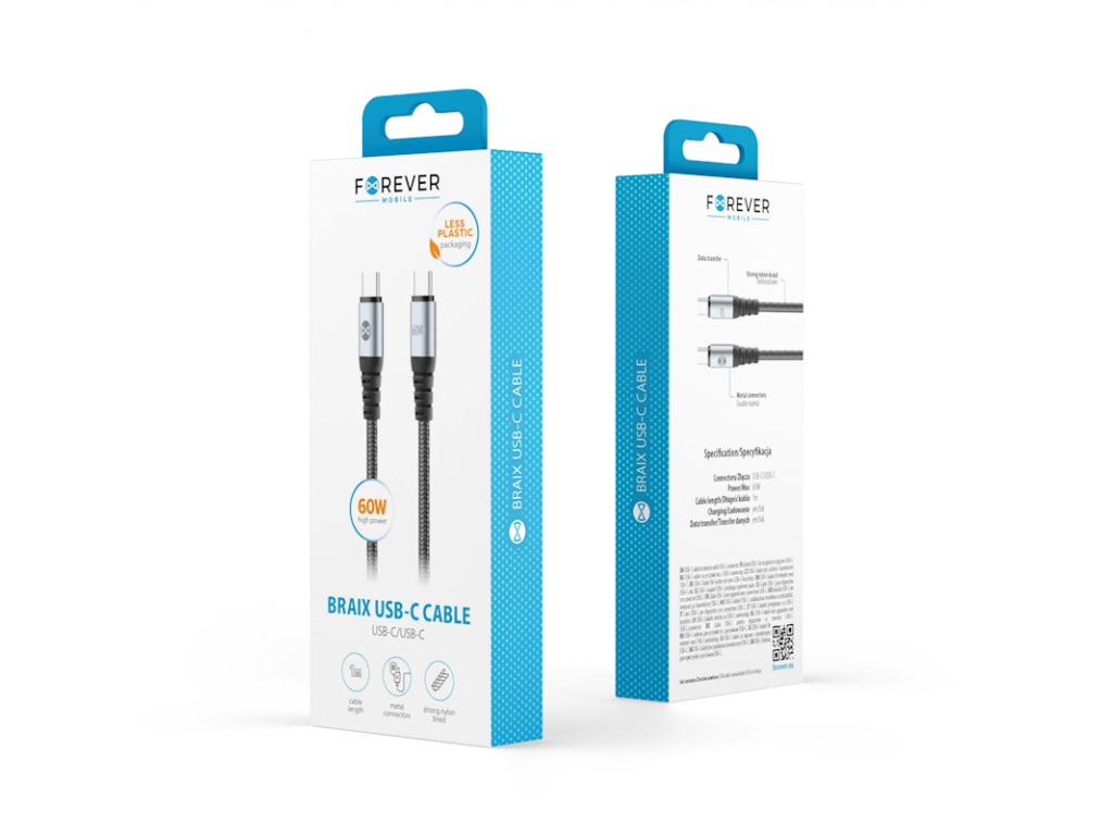 Kábel Braix USB-C - USB-C 1m, 60W, čierny [GSM195611]