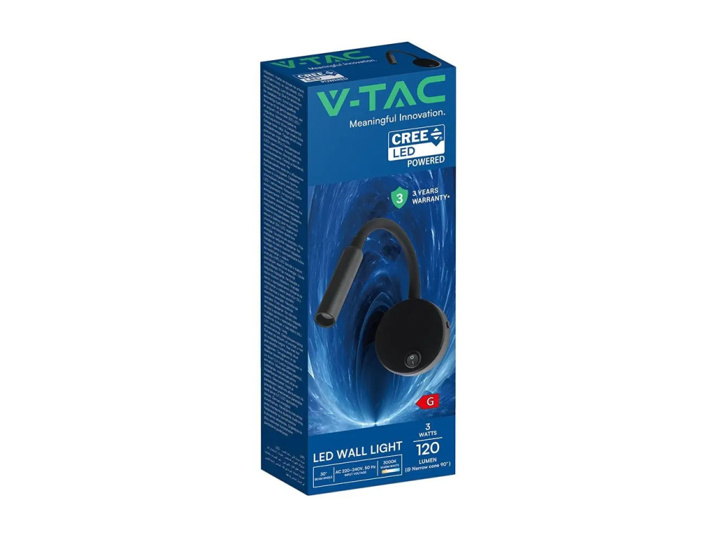 LED lampa k posteli 3W, 120lm, CREE CHIP, čierna