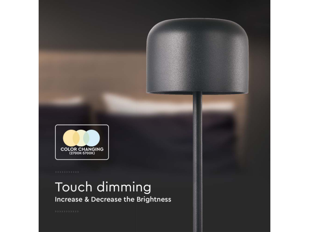 LED nabíjateľná stolná lampička 1,5W, 150lm, 2200mAh, CCT, čierna