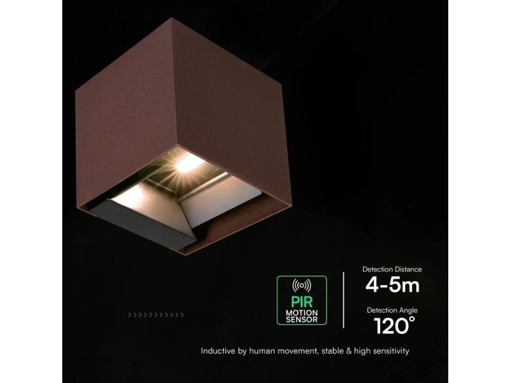 LED nástenné solárne svietidlo s PIR senzorom 9W, 800lm, CCT, IP65, hnedo-červené CORTEN