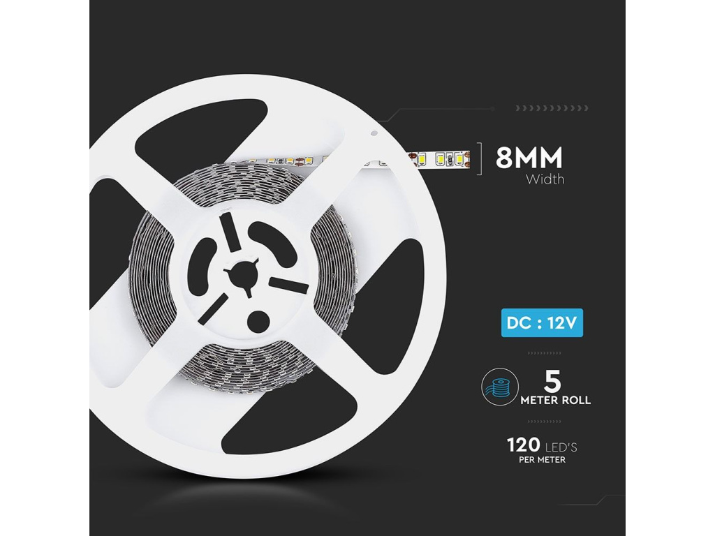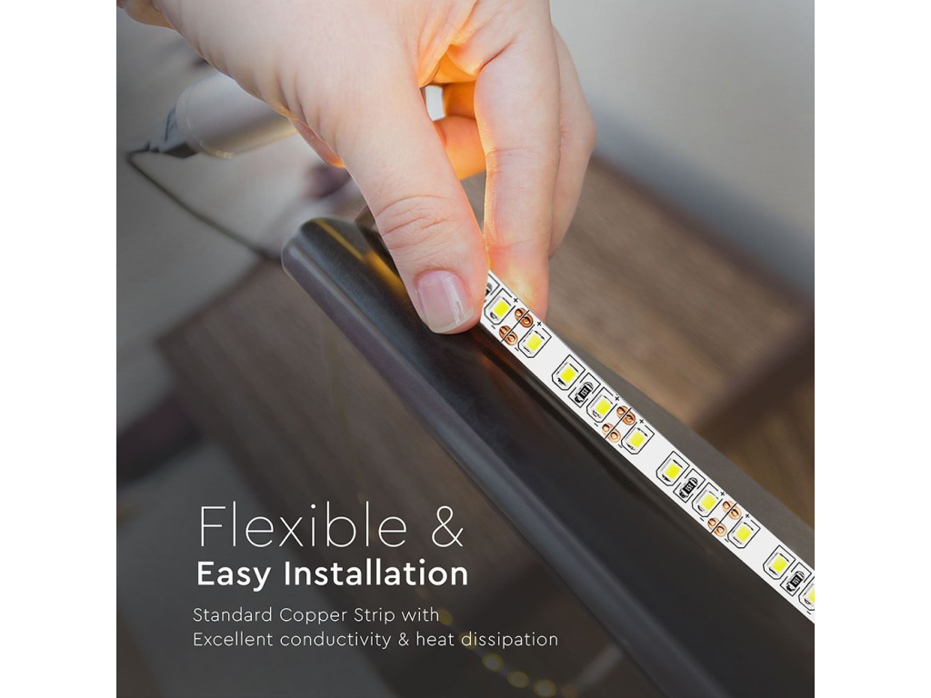 - LED pásik je nízkonapäťový flexibilný pásik dostupný v DC: 12V
