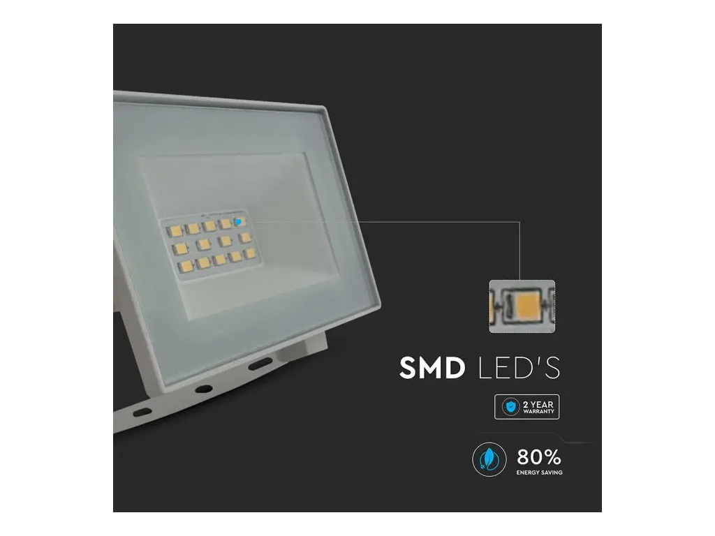 LED reflektor 10W, 730lm, IP65, 110°, biely