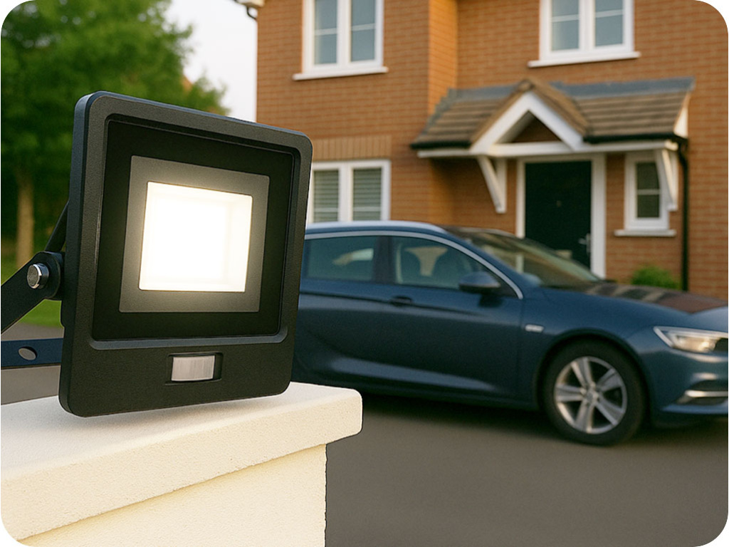 LED reflektor s PIR senzorom 30W, 2340lm, čierny