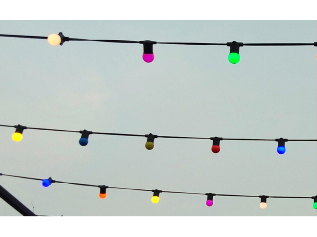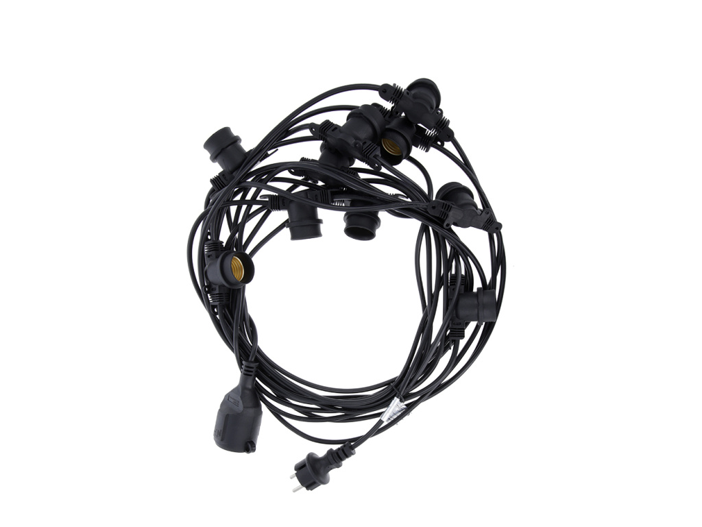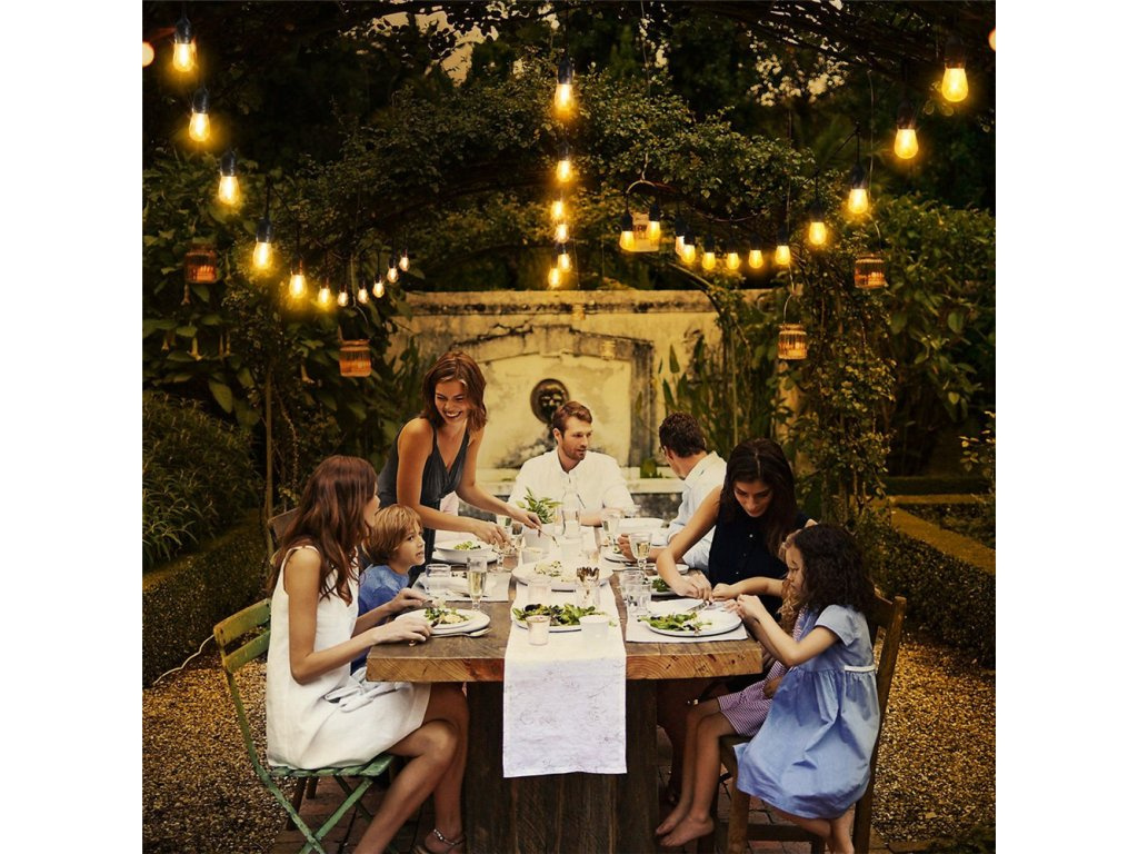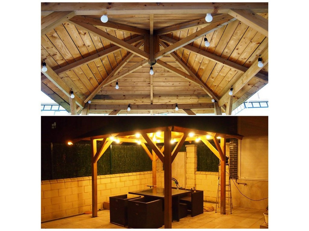 - Vzdialenosť medzi žiarovkami je 1 meter a dĺžka celého venca je 12 metrov. Prvé 2 metre od zástrčky k prvej žiarovke vám umožňujú voľne nainštalovať girlandu bez obáv, že prvá žiarovka je príliš blízko a posledný meter kábla vám umožňuje pohodlne ho predĺžiť o ďalšiu girlandu. Prierez drôtu 2x0,75 mm2 umožňuje pripojiť až 10 girlánd a presvetliť väčšiu plochu, napríklad tanečné parkety, reštaurácie alebo veľké záhrady.