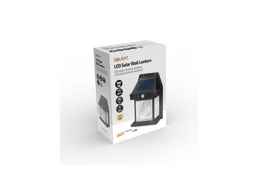 LED solárna lampa s PIR senzorom, 3 režimy, 100lm [WL918]