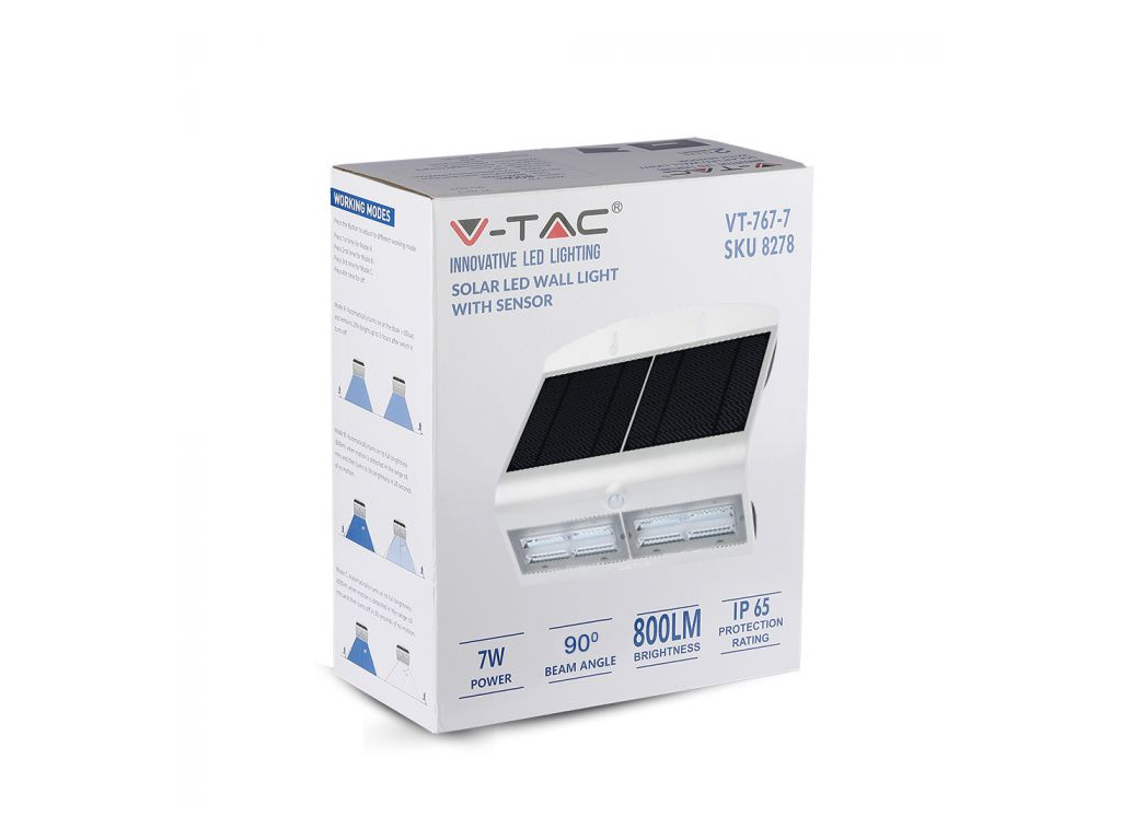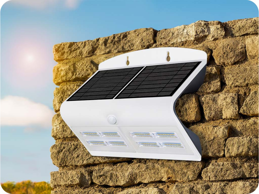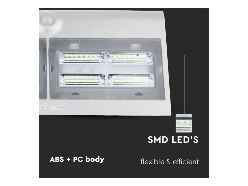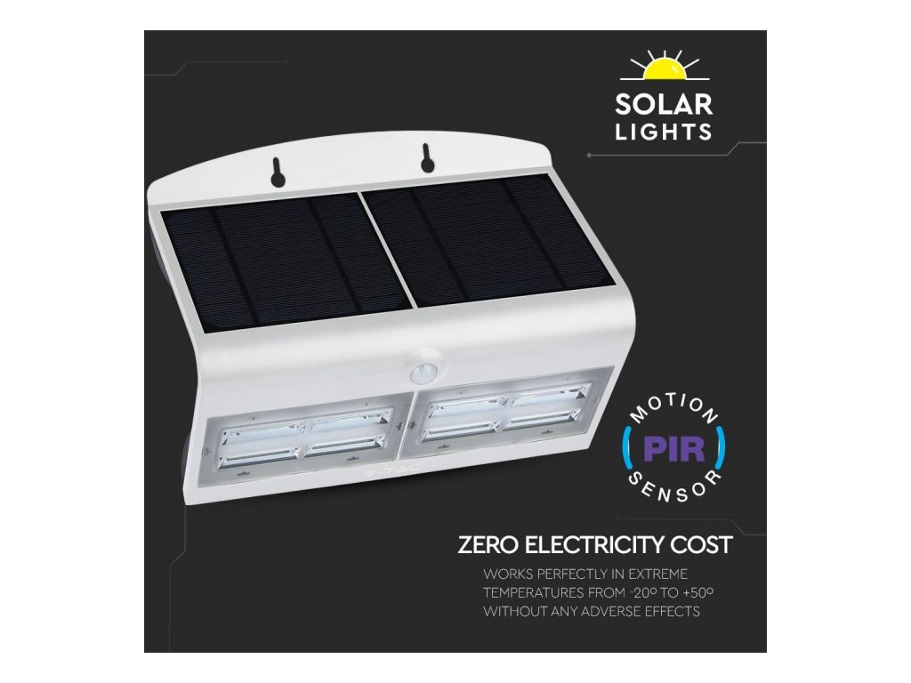 LED SOLÁRNE SVIETIDLO S POHYBOVÝM SENZOROM 7W, 800lm, biele/čierne, IP65, 4000K
