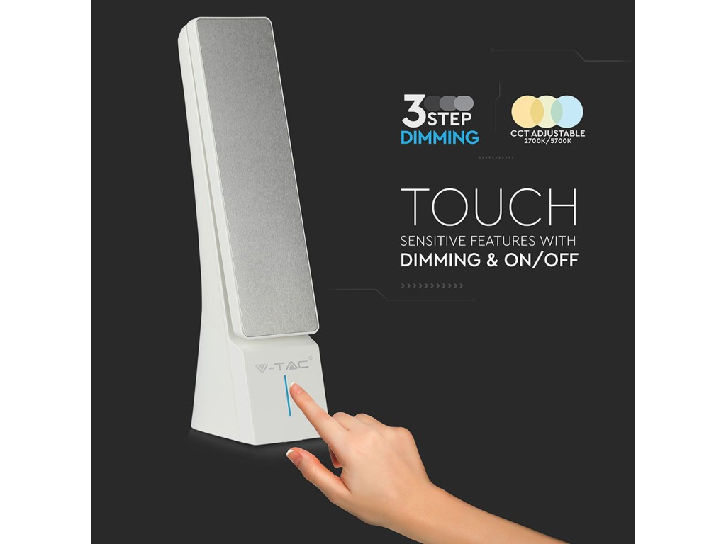 LED STOLNÁ LAMPA 4W, 3 V 1 (TEPLÁ, DENNÁ AJ STUDENÁ), BIELA+STRIEBORNA FARBA