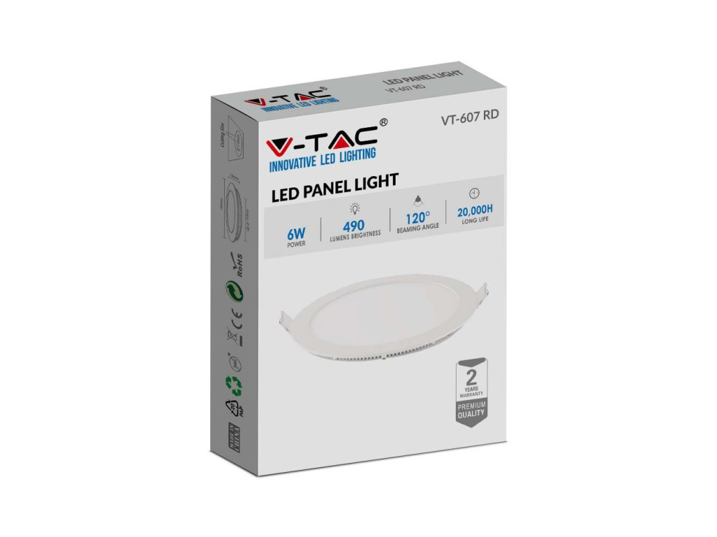 LED vstavaný panel s napájacím zdrojom, 6W, 490lm, okrúhly/2-PACK!