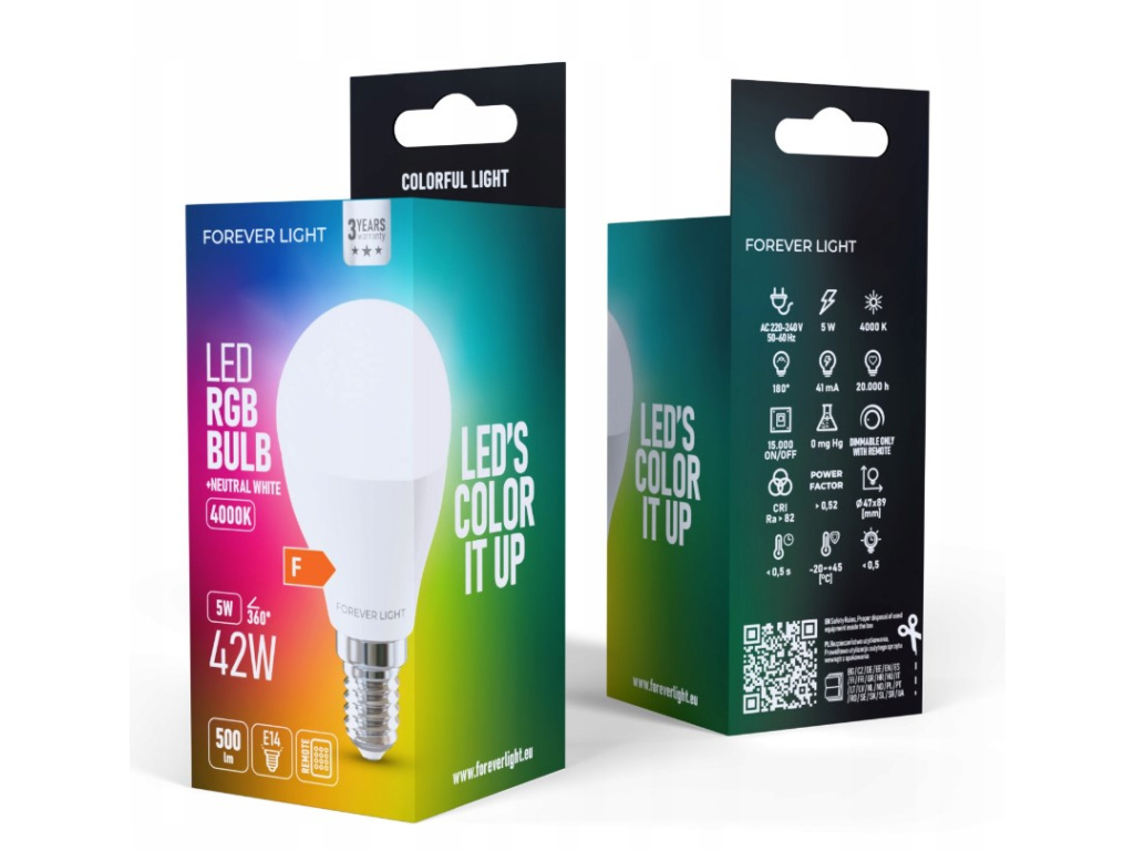 LED žiarovka, E14, RGB+W, 5W, 500lm, G45 s diaľkovým ovládaním [RTV9000080]