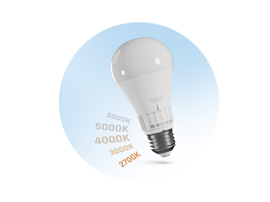 - LED žiarovka s meniteľnou farbou svetla CCT 2700/3000/4000/5000/6500K