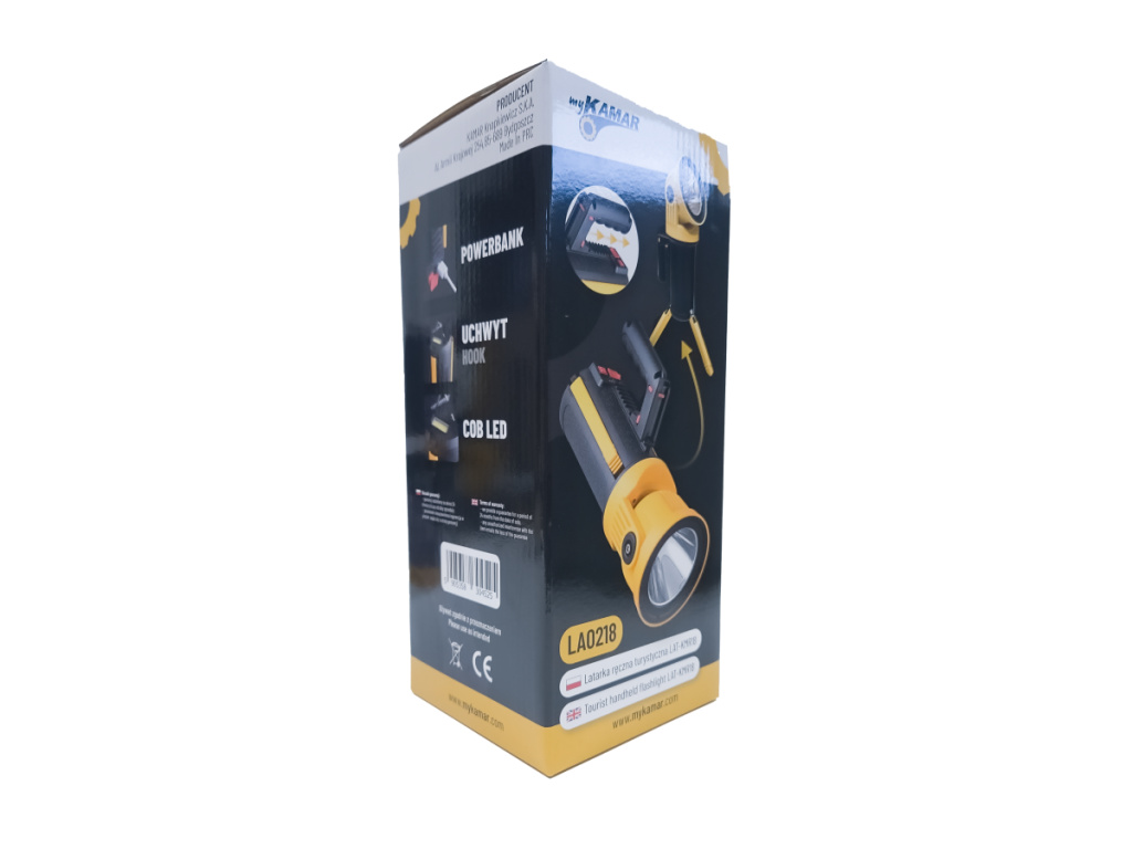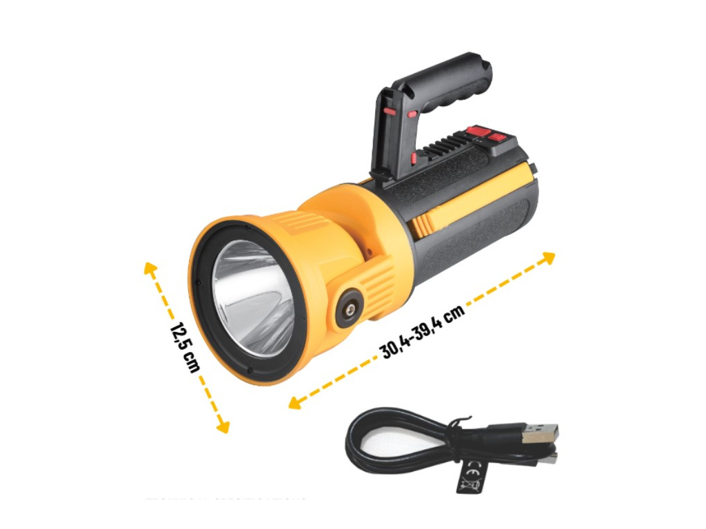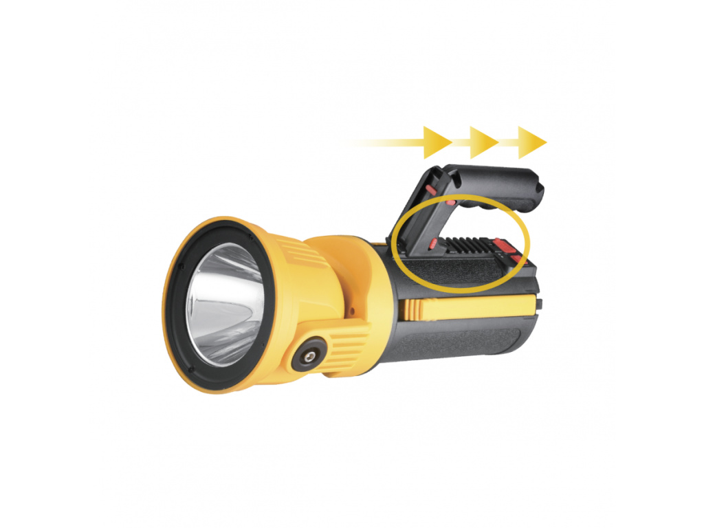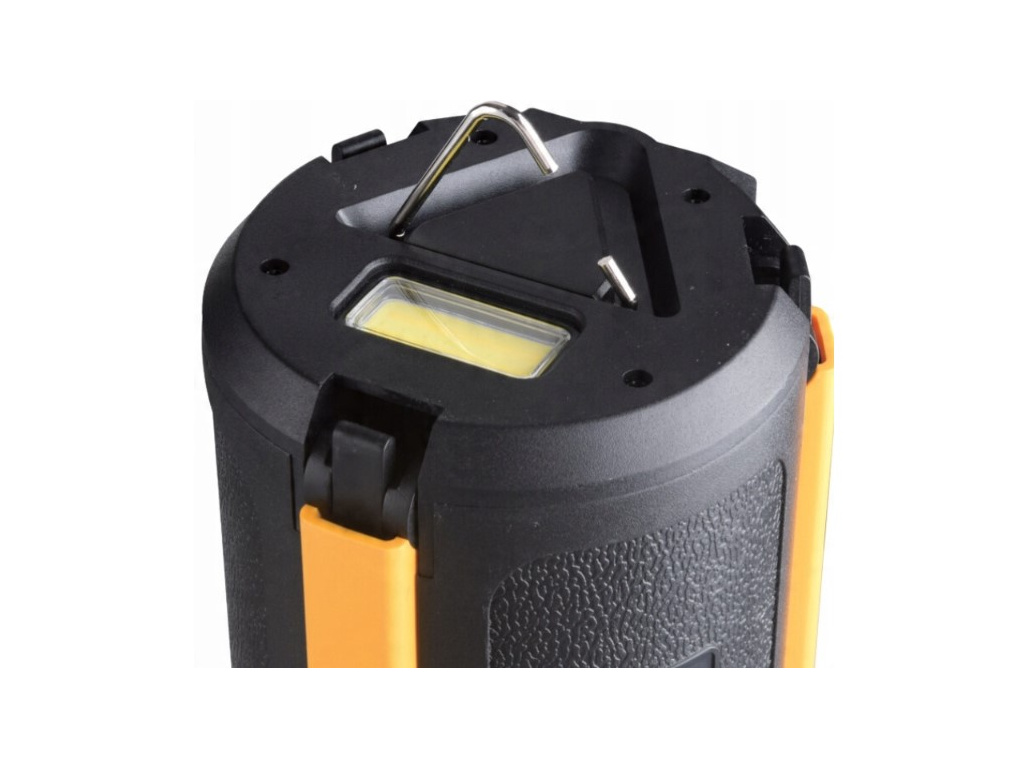 - Tri rozkladacie nohy zabudované do základne baterky umožňujú jej stabilné umiestnenie na rovnom podklade, čo z nej robí vynikajúce riešenie ako v dielni, tak aj počas táborenia alebo opráv.