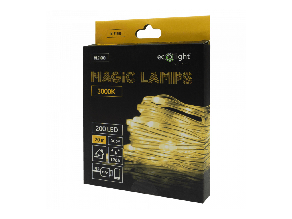 - Reťaz IP65 – na vonkajšiu dekoráciu; USB konektor s krytím IP20 na použitie v suchom prostredí.