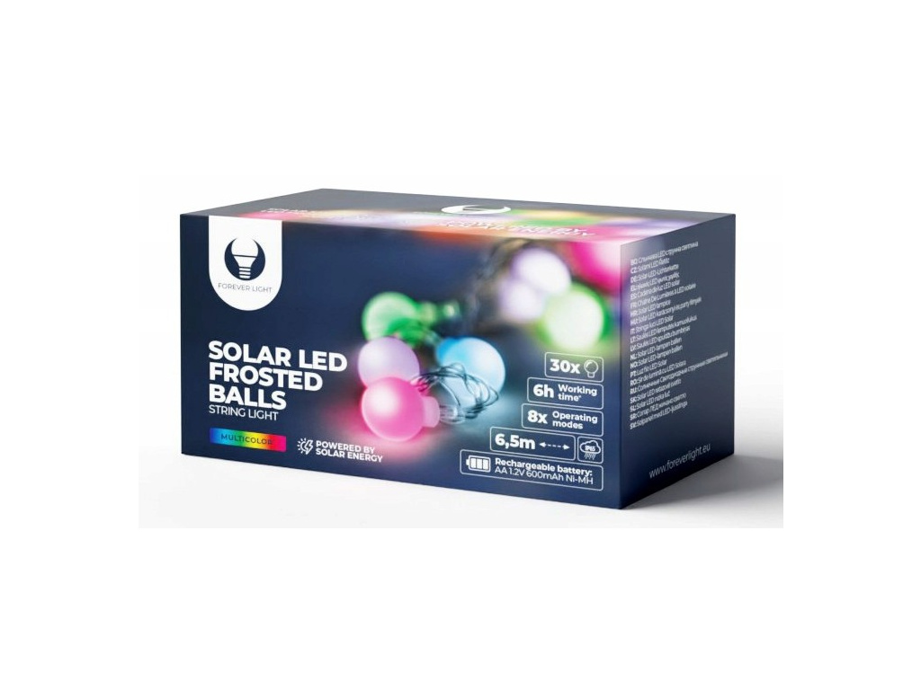 Solárne LED reťazové svietidlo 6,5m, 30xLED, 8 módov, viacfarebné, IP65 [RTV100191]