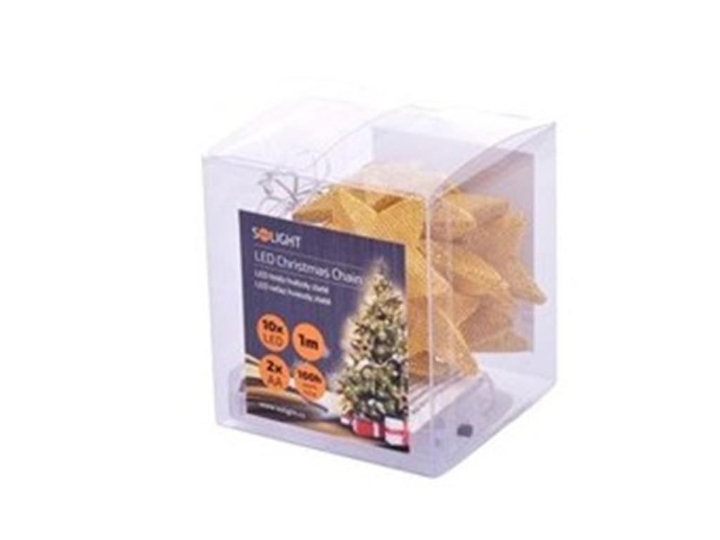 Solight LED reťaz vianočná, hviezdy zlaté, 10LED reťaz, 1m, zlatá farba, 2xAA, IP20 [1V212]