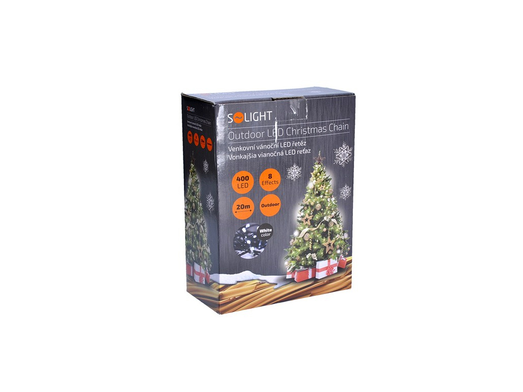 LED vonkajšia vianočná reťaz, 400 LED, 20m, 8 funkcií, studená biela [1V07-W]