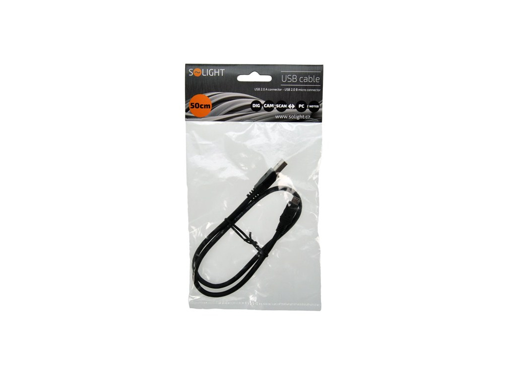 Solight USB kábel, USB 2.0 A konektor - USB B micro konektor, 50cm