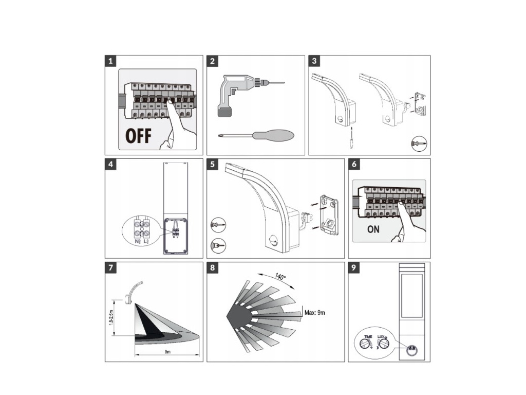 | Detekčná vzdialenosť: | max. 9m |